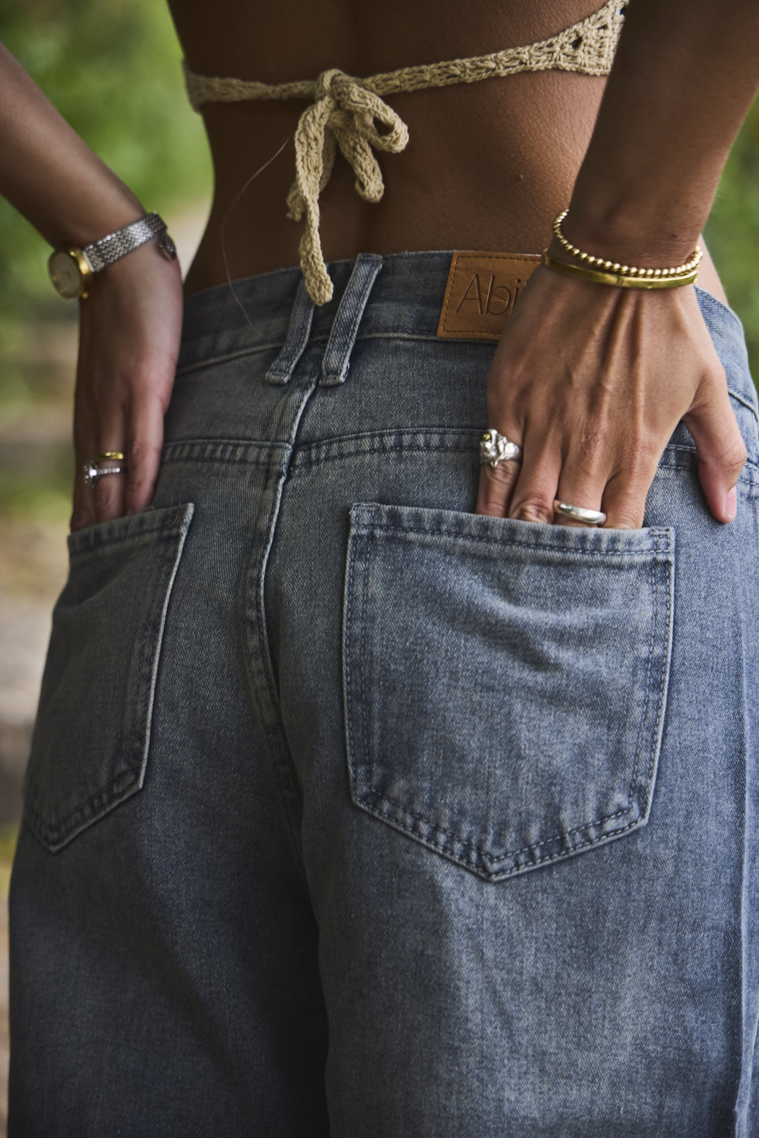 Pantalón denim en tono azul grisáceo, de tiro medio y calce suelto para máxima comodidad. Su estructura liviana y holgada lo hace ideal para uso diario, aportando frescura y soltura sin perder estilo.