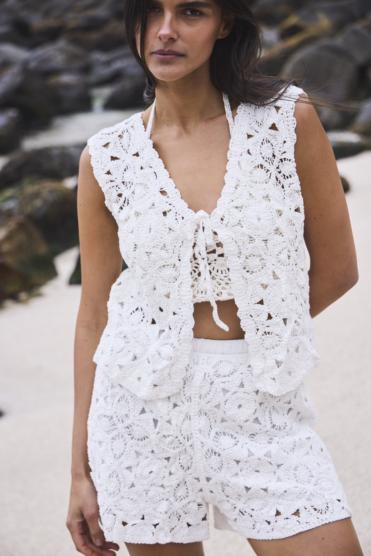 Short veraniego tejido a crochet, de calce holgado y suelto para máxima comodidad en días cálidos. Su textura artesanal y liviana lo convierten en una prenda ideal para complementar looks frescos de temporada.